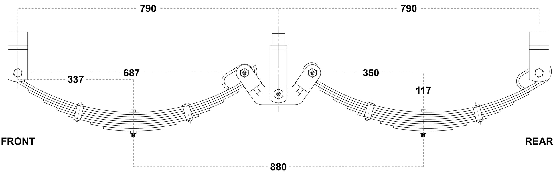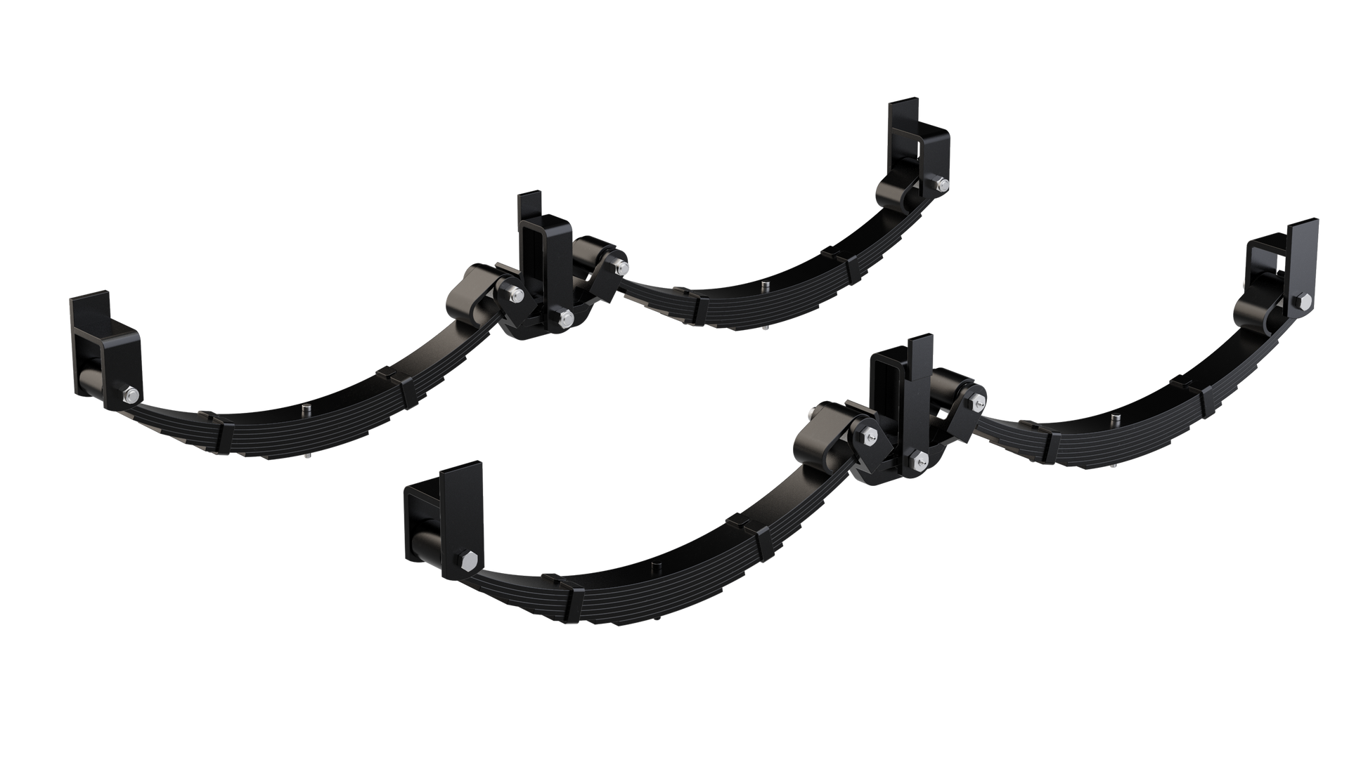 Fitted with greaseable bolts and load-sharing rocker arms, this system delivers smoother towing, improved impact absorption, and increased load-carrying capacity compared to conventional leaf springs.